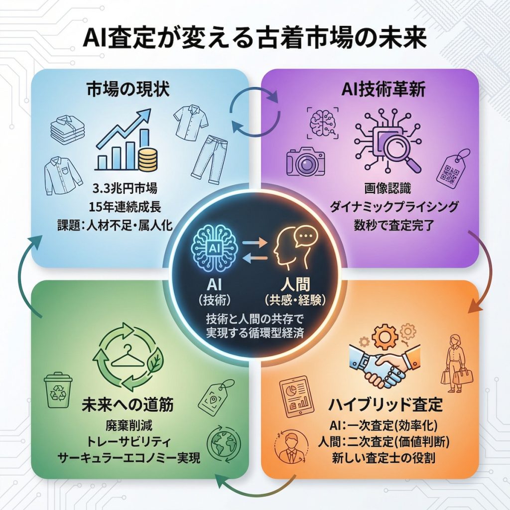 古着の価格をAIが決める時代。それは、単に人間の仕事が機械に置き換わるという単純な話ではありません。それは、テクノロジーと人間が共存し、それぞれの強みを活かすことで、より効率的で、透明性が高く、そして持続可能な新しいリユースの地平を切り拓いていく時代の幕開けなのです。私たち研究者、そして業界に関わるすべての人間が、この変化を正しく理解し、そのポテンシャルを最大限に引き出していく責任があると言えるでしょう。